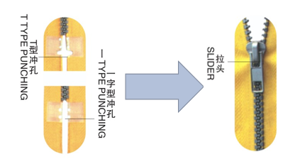 - 特殊定位設計,有無下止均可靈活定位,保證無下止穿頭后鏈牙整齊閉合。
